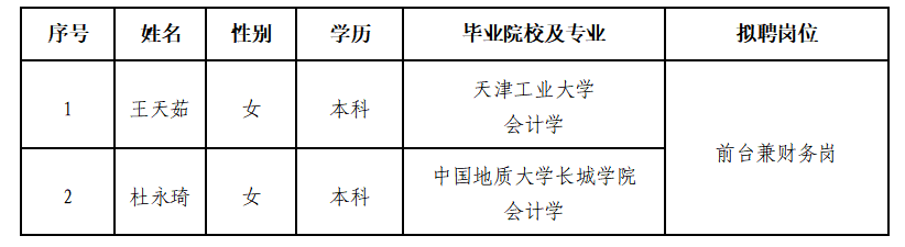 因公司发展需要,华体(中国)一站式服务平台市建设投资有限责任公司委托第三方机构面向社会公开招聘前台兼财务岗员工。现对拟录用人员信息进行公示,公示期间如有异议,可通过电话、信函等方式反映,反映意见请署真实姓名。